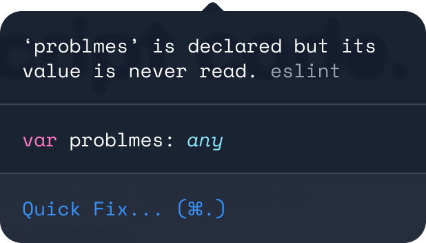 ESLint analysiert deinen Code statisch, damit Probleme schnell gefunden werden. Es ist in die meisten Texteditoren integriert und Du kannst ESLint als Teil deiner Continuous-Integration-Pipelines nutzen.